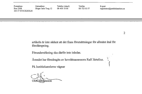 Justitiekanslern ogillar åtal mot UNT som förolämpat mig