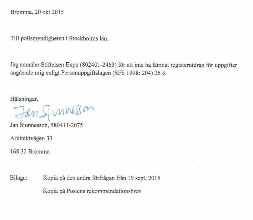 Expo anmäls för brott mot PUL