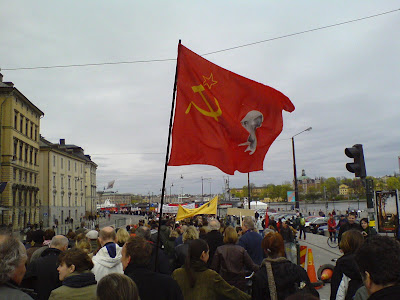 Lenin 05/11/2015 400 × 300 Expo ljuger om Folkets Demonstration Leninflagga vid Vänsterpartiets demo i Kungsträdgården 2012