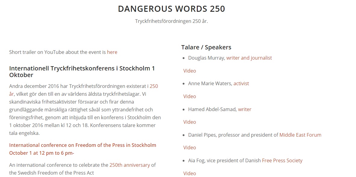 1-okt 23/10/2016 1183 × 588 Tal från tryckfrihetskonferensen Farliga Ord/ Speeches on freedom of the Press