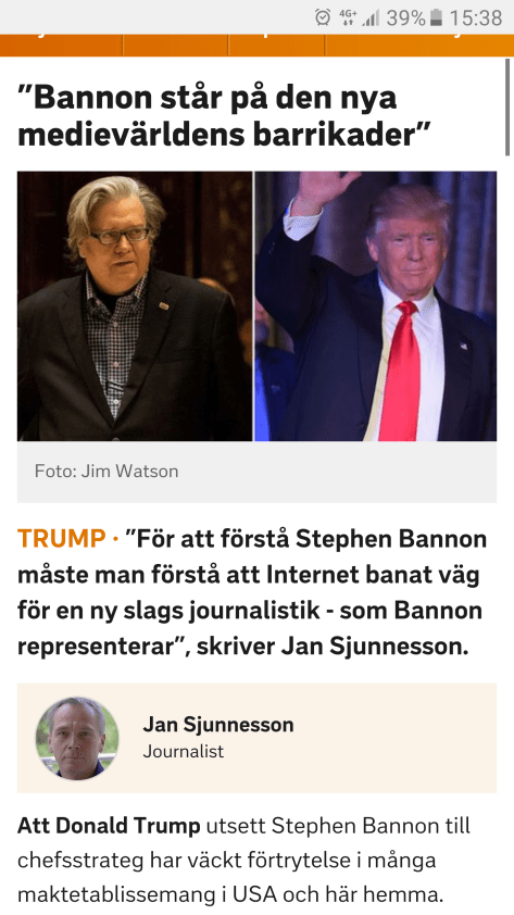 Jag har ett inlägg idag 15 nov på SVT Opinion om Breitbarts vd Stephen Bannons nya uppdrag – chefsstrateg hos Donald Trump.