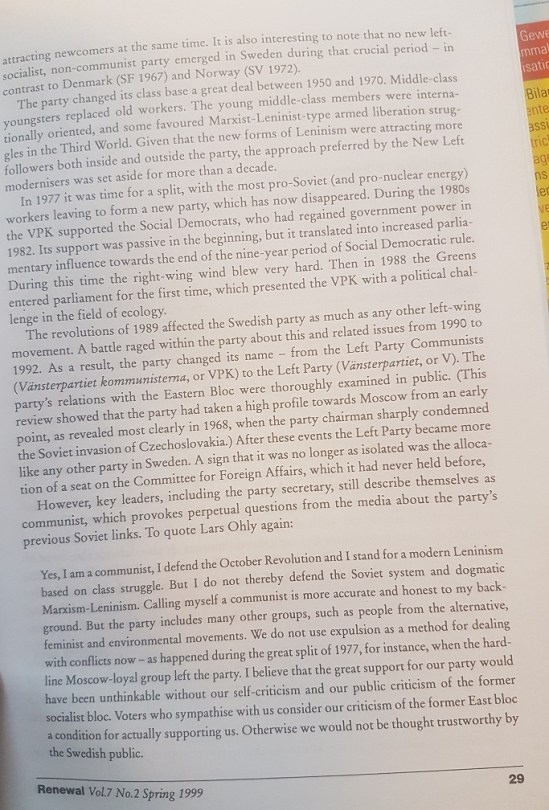 Om Vänsterpartiet i tysk och engelsk vänsterpress 1996 och 1998