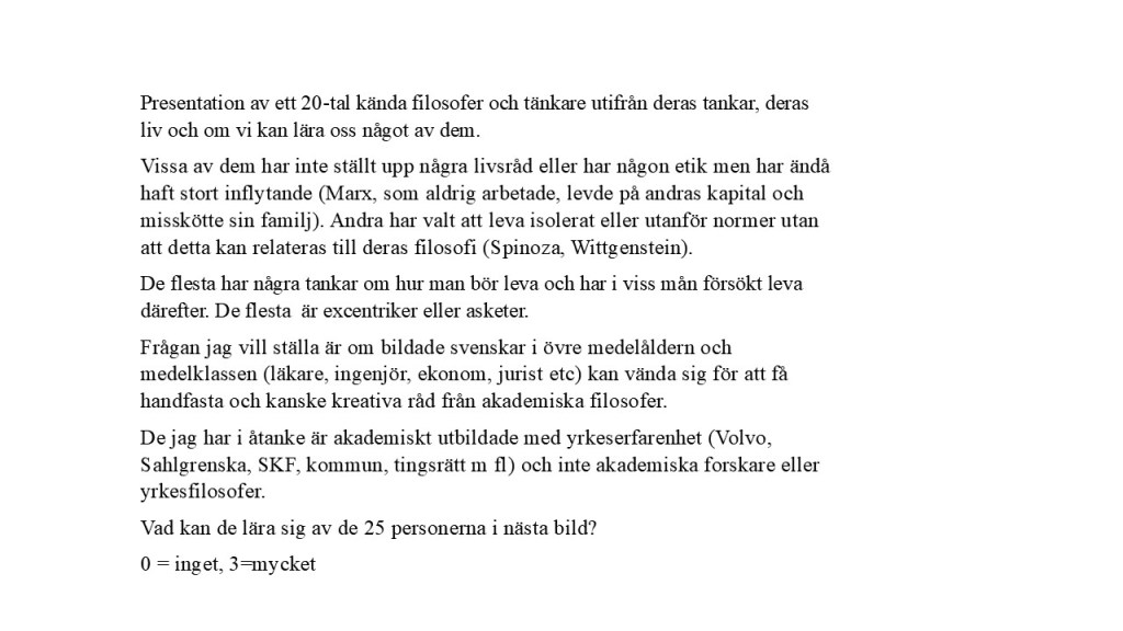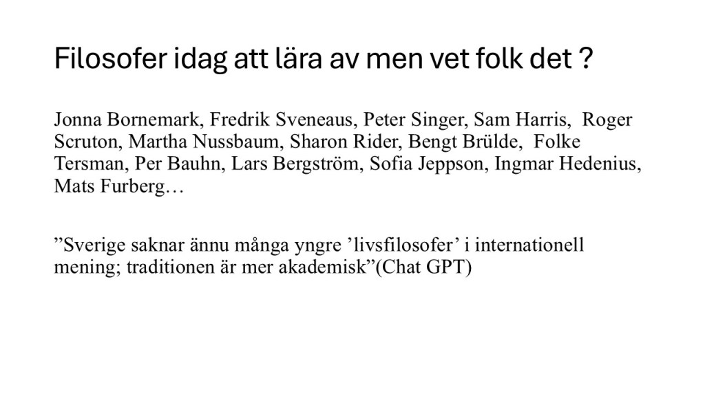 Filosofi, Kultur, Praktiska förslag Leva som man lär – filosofer och deras liv 25/04/2026 Jan Sjunnesson Lämna en kommentar Utkast till föredrag. 25 april, 2026, Jan Sj. Dela Dela på X (Öppnas i ett nytt fönster) X Dela på Facebook (Öppnas i ett nytt fönster) Facebook E-posta en länk till en vän (Öppnas i ett nytt fönster) E-post Gilla Laddar in …